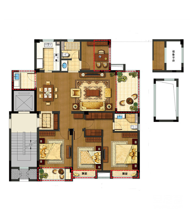 楼盘户型:3室户型, 4室户型