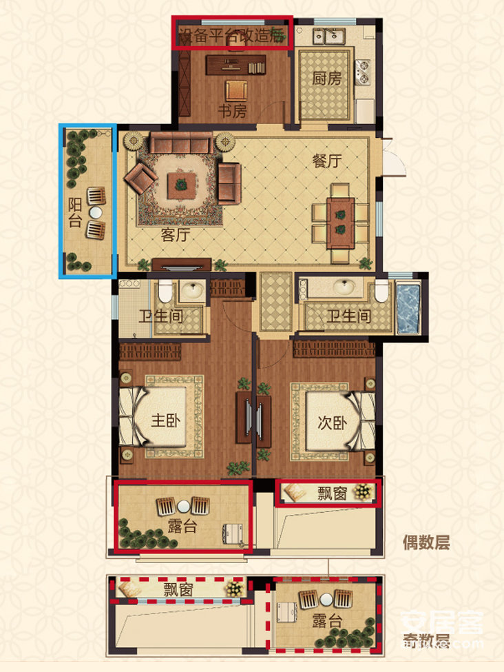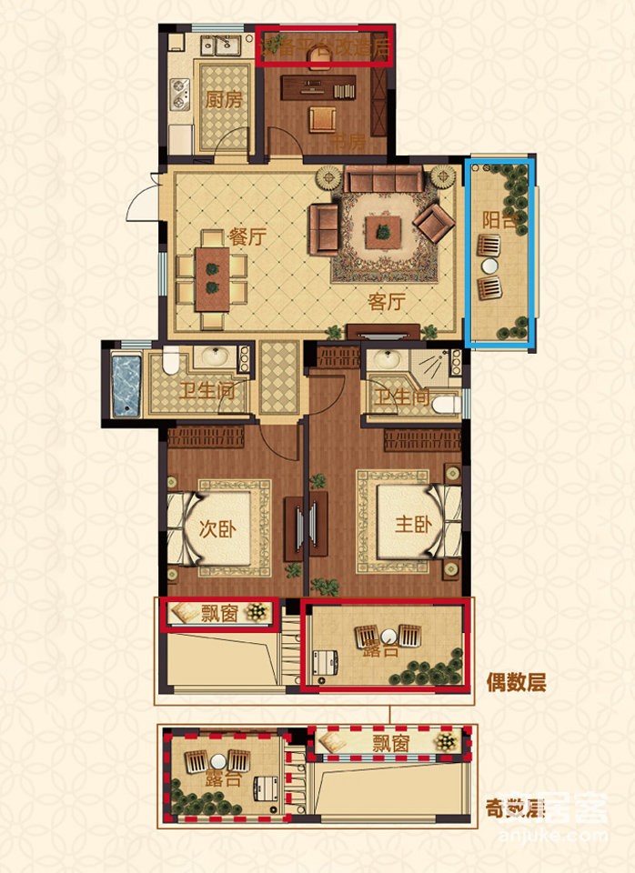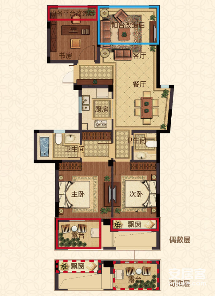 楼盘特点:南北通透 飘窗 小户型 小三室 厨卫全明