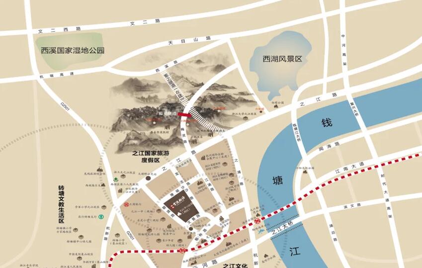 周边公园:宋城主题公园、之江极地海洋公园、之江船工业遗址公园;