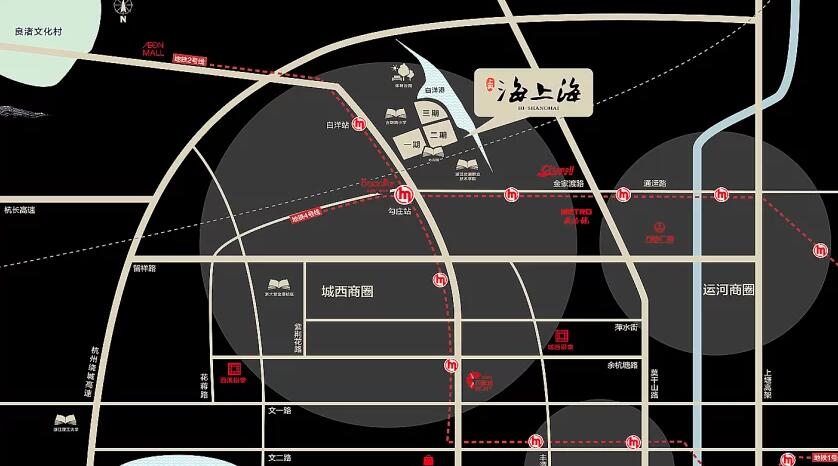 6、学校:北侧隔金汇南路规划为36班古墩路小学,古墩路小学是余杭区重点规划建设的公办小学,于2017年正式开课。
