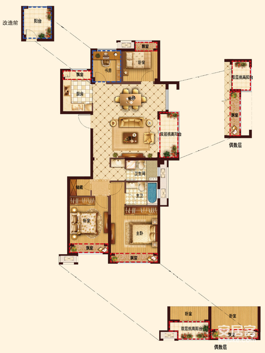 楼盘户型:3室户型 (5), 4室户型 (6)