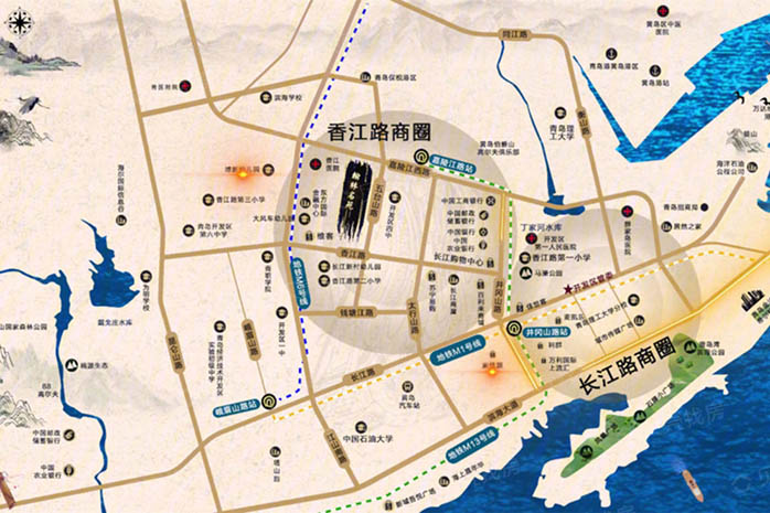 项目雄踞香江路稀贵地段,香江路商圈优势明显。近享M13号轻轨嘉陵江路站,通车后将畅行整个西海岸新区