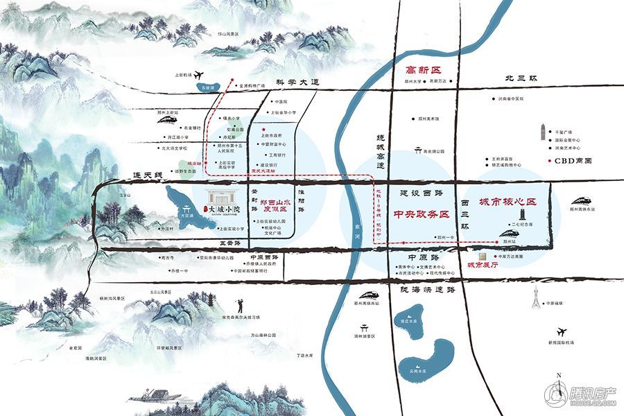 项目位于郑州上街区,区域未来将发展为郑西低密宜居区域。环绕五云山与方顶湖的天赋秘境,对望有着“600年状元故里”之称的方顶村,泰禾大城小院倾造约110万方山水院落,自然环境优越,人文气息浓厚。