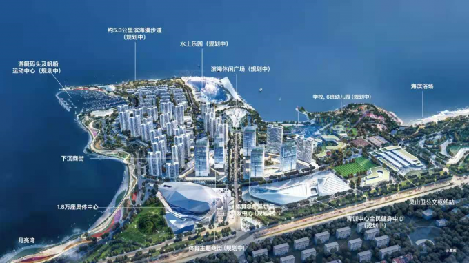 鲁商发展、华润置地响应青岛市打造“体育之都”的城市发展理念,依托得天独厚的山海资源,联合打造青岛国际体育文化产业——蓝湾运动中心,项目位于西海岸新区滨海大道南侧,总占地面积约1380亩,总投资约200亿元,配置标准约18000席座,集体育赛事、文娱活动、大众健身、主题商业多元业态于一体。建成后将以主场之姿,为青岛带来更为开放的姿态、更为频繁的国际互动、更为国际化的生活方式。