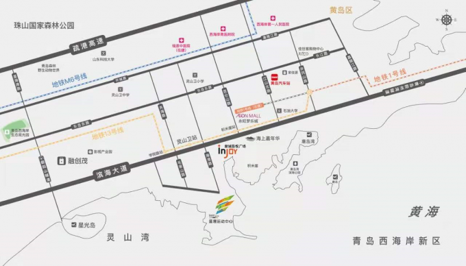| 周边配套: | 周边商业:融创茂、新城吾悦广场、永旺梦乐城、海上嘉年华 周边餐饮:项目有沿街商业 周边公园:小珠山国家森林公园,唐岛湾滨海公园、银沙滩、西海岸生态园 周边医院: 青医附院 教育学校:灵山卫小学和黄岛十二中 交通配套:灵山卫公交枢纽站(隧道5、6、7、8路、公交301---307路)、13号地铁线灵山卫站 | ||