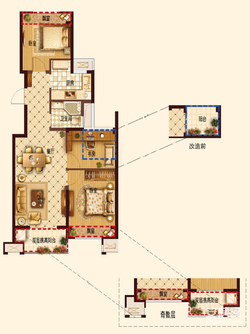 楼盘户型:3室户型 (5), 4室户型 (6)
