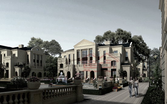 天成锦上的排屋合院都采用最纯正的法式风格建筑。我们以居住的适宜度为主要标准,采用浅色系列,搭配景观设计之后,特别清新高雅。建筑立面以对称严谨的形式设计突出了法式建筑的高贵特征。法式建筑浪漫的孟莎式屋顶,转折精巧的坡度,造型各异的窗子,各种精致的圆拱、券廊、雕花……也都在天成·锦上的设计中充分地加以体现。我们用全真石石材干挂,一方面保证历久弥新的品质,另一方面只有石材干挂才能衬托出法式建筑的华丽高贵。